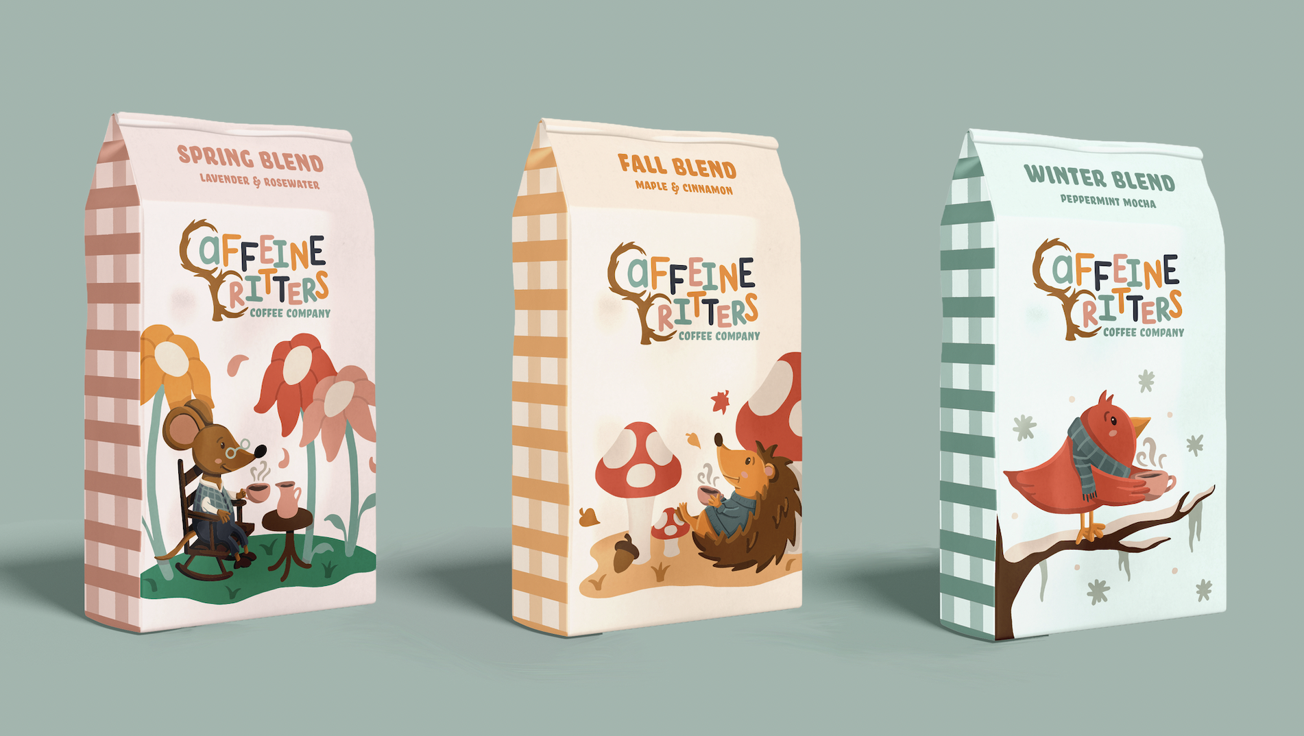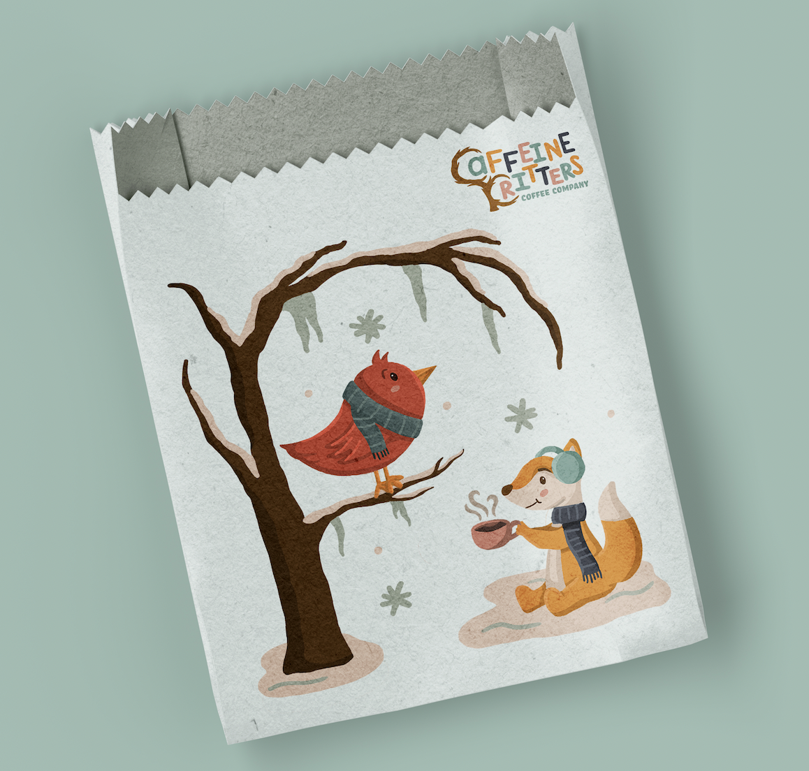 Caffeine Critters is an imaginary coffee brand centered around cozy vibes and the seasons of the year.