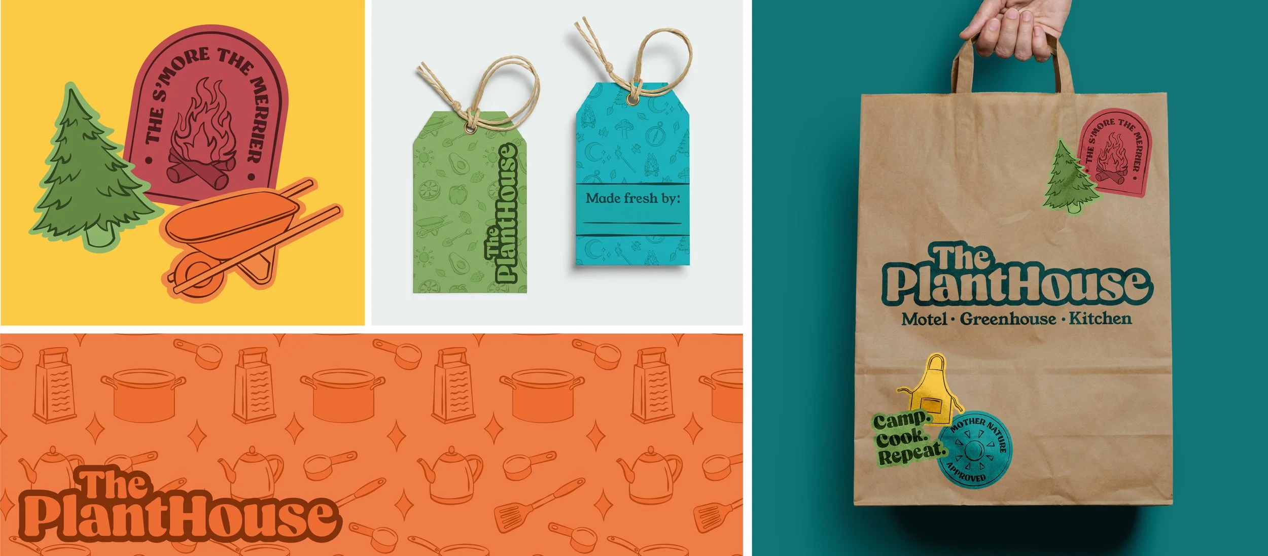 The brand design is inspired by the camp-like feel of the cabins guest stay in and the natural elements of the motel’s identity.